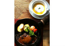 糸島野菜・糸島豚・糸島天然真鯛など、糸島の食材を使ったメニューが豊富です。糸島グランプリ2013で優勝したフライドチキン「ももちゃん」も食べられます!