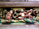 その豪華さは、見ていて楽しくなるほどだ。金・朱・緑・青・黄と原色がこれでもかとばかり、どの建物にも使われている。そして、精巧に彫り上げられた仁王様・狛犬や竜には、おどろおどろしさはなく、ちょっと丸みを帯びたシルエットが愛らしく、とてもポップな存在に思える。その中でも象徴的なのが、三猿と眠り猫だ。「見ざる、聞かざる、言わざる」をはじめとする猿はとても現代的。アニメのキャラクターとして、今でも十分に通用しそうだ。眠り猫の方は東照宮裏手の山の入り口にある坂下門に彫られている。ところが、ここだけ別料金の500円。しかし、みな有名な眠り猫を見るためだけに、この料金を払い続々と入っていく。日本で一番、稼ぎがありそうな眠り猫はこの料金を払ってもその価値があった。まるで生きているかのうように可愛い。手を差し伸べて、喉のあたりをさすったら「ゴロゴロ」と喉を鳴らしそうだ。