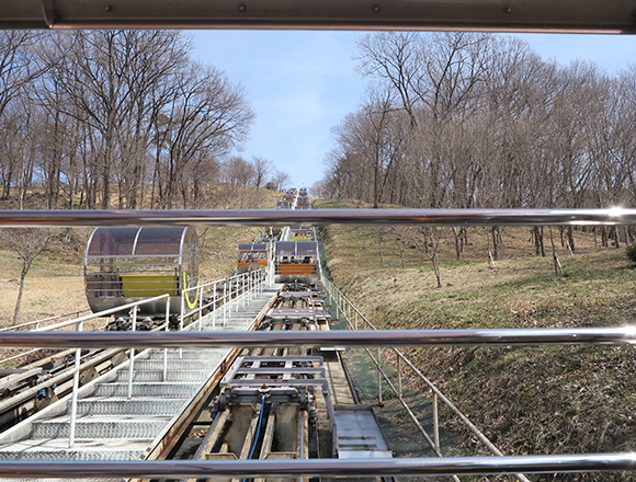 ゆ~っくりゆ~っくり、約15分かけて山頂までのぼっていきます。歩いて行きたいという方は、隣に遊歩道もありますよ!(山頂まで約10~15分)