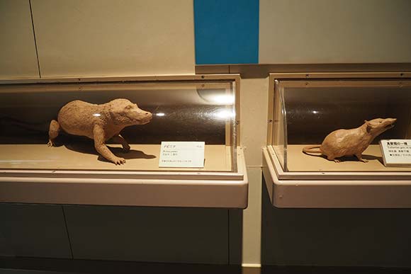 第2展示室を進んでいくと、進化のトンネルが現れます。こちらのトンネルでは、今から約5億年前のカンブリア紀など古生代〜新生代の展示が見られますよ。