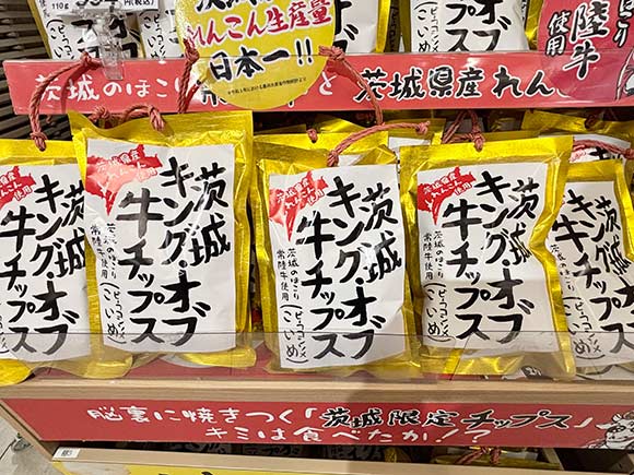 そして私が個人的におすすめしたいのが、茨城キング・オブ牛チップス。茨城県産のれんこんや常陸牛のパウダーで味つけされたチップスです。