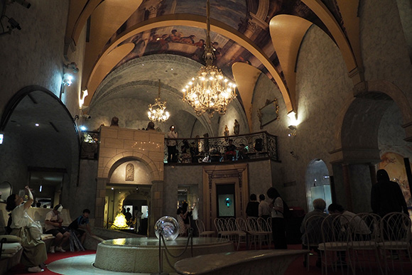 まず訪れたのは、“ヴェネチアの貴族の館”をイメージしたヴェネチアン・グラス美術館。足を一歩踏み入れると、豪華絢爛な内装に圧倒されます!