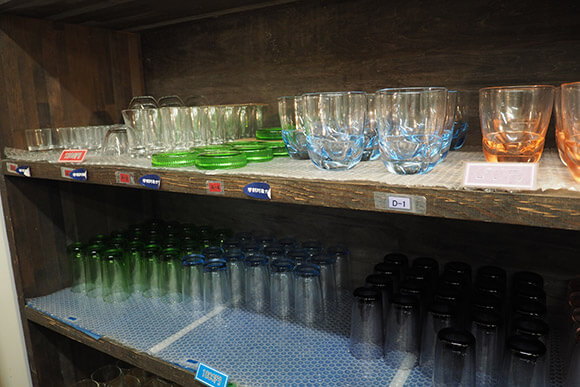 ショップ内にはガラス製品がたくさんあり、その数なんと約10万点!食器やインテリア雑貨などがあり、見ているだけでもワクワクします。
