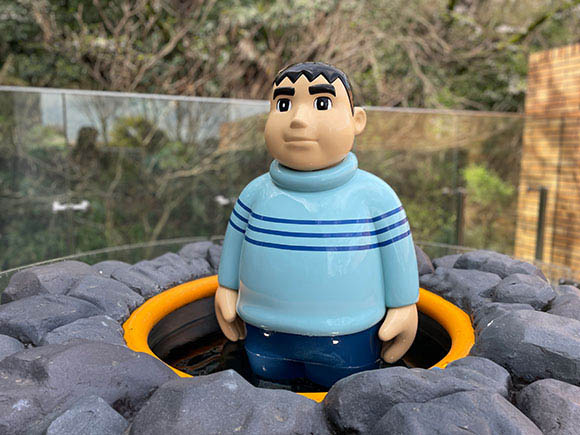 泉の中から、レバーの動きに合わせて徐々にジャイアンが出てきました!