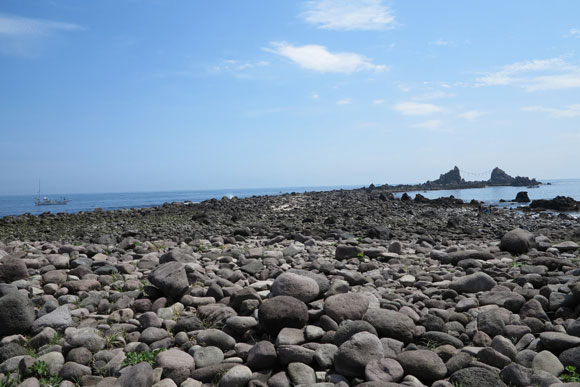 足元を見ると、たくさんの砂利が…。遠くを見渡すと岩肌まで見えます。はたして無事にたどり着くのか??心が折れそうになっても、歩いて三ツ石まで行けるチャンスはめったにないことを考えて自分自身を奮い立たせましょう。