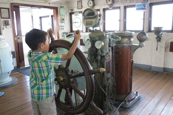 歴史の内容は小さな子どもにはまだ少し難しいようで、歴史の勉強よりも船内の探検に夢中でした。