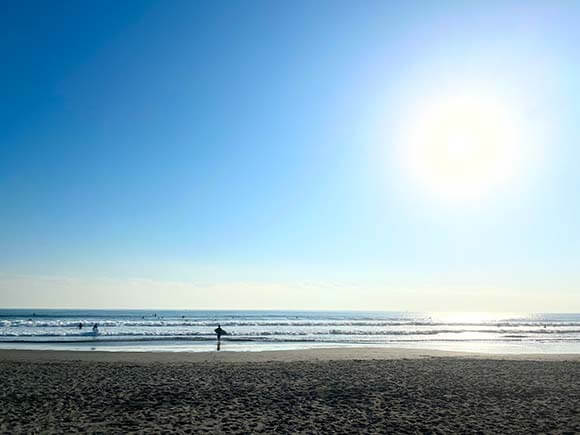 特徴は、遠浅で一年を通して小さい波が中心なこと。またアクセスが良く、周辺にはレンタルやスクールをおこなうサーフショップも充実しているため、初心者にはうってつけの場所です。