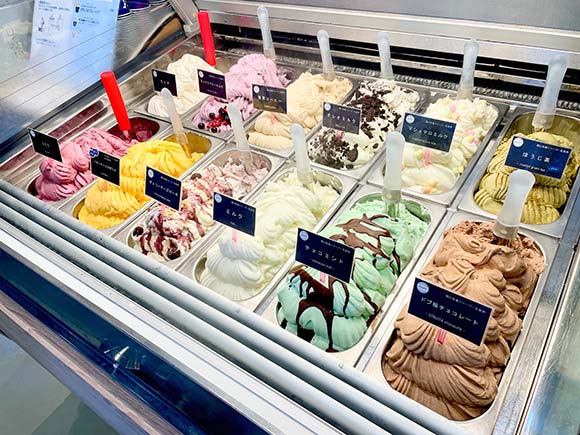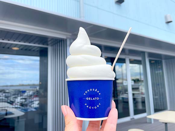 よこすかポートマーケットでも一二を争う人気店なのが、「YOKOSUKA GELATO FACTORY」。横須賀・関口牧場の牛乳でつくる自家製ジェラートが味わえます。