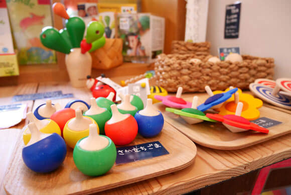 売られているおもちゃに手を触れてみると、なんとも言えない懐かしさが。子どものころ、木のおもちゃで遊んだ記憶がよみがえってくるようです。