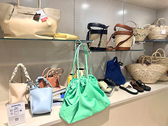 バッグやシューズなど服飾雑貨も充実。服と合わせて、トータルコーディネートが楽しめます。