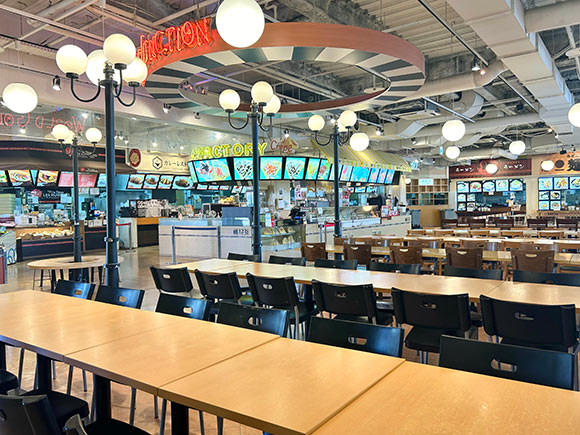 なかでも人気があるのは、いろいろなお店の料理を一度に楽しめるフードコート。館内には、メインサイドとシーサイドに1カ所ずつフードコートがあります。