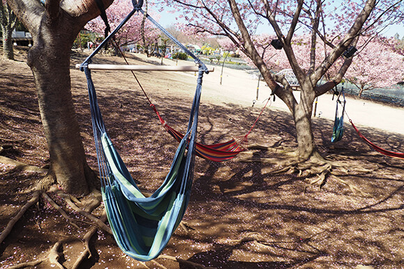 遊び疲れた時には、芝生エリアにあるこちらの「木陰でゆらゆらハンモックエリア」を訪れてみてはいかがでしょうか?ゆらゆらしていると、リラックスして気持ち良いですよ。
