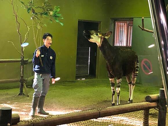 オカピの飼育場では飼育員さんによる解説も聞けます