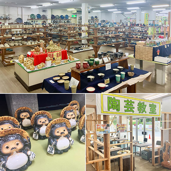 益子焼窯元共販センターには売店や飲食店、陶芸教室があり、ショッピングや食事を楽しむことができます。愛らしくも迫力満点のぽんたくんに、会いに行ってみてはいかがでしょうか?