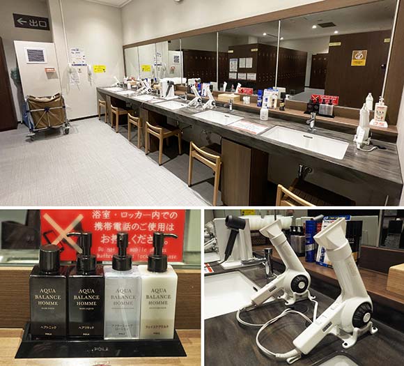 洗い場・シャワーには、それぞれシャンプー・コンディショナー・ボディシャンプー・洗顔フォームのアメニティが設置されているので、手ぶらで来てもOKです。