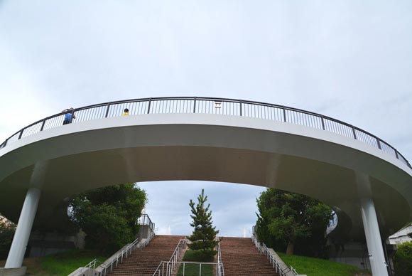 「お台場海浜公園」へ戻り、続いて「潮風公園」へ向かうと見えてきたのは、展望デッキ。フジテレビの社屋も見えて、眺めがいいです。
