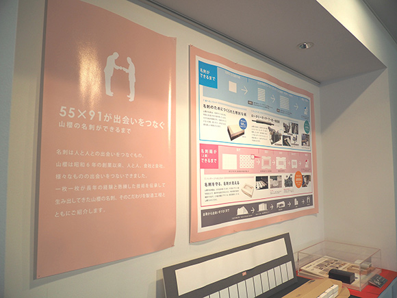 壁には、名刺ができるまでの工程などが展示されていました。名刺は私たちの身近にありますが、つくる工程を知る機会はなかなかないですよね。