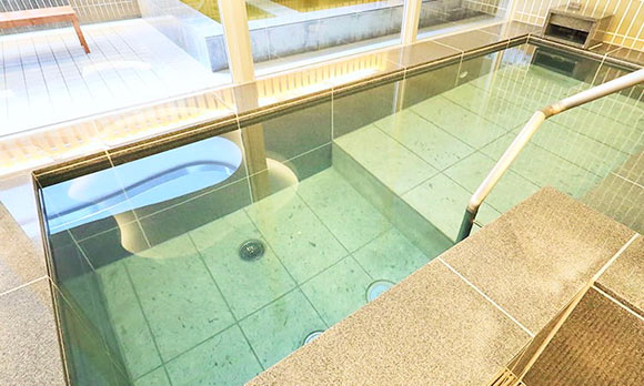 「高濃度炭酸湯」は、1,000ppm以上ある高濃度炭酸泉を使用したお風呂。お湯に溶け込んだ炭酸ガスが血管を拡張し、血流を良くすることで、身体を芯からあたためてくれます。