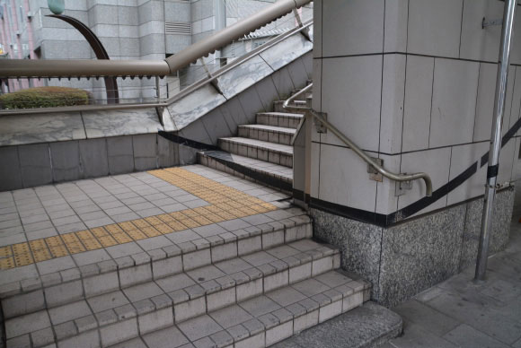 立川駅北口のペデストリアンデッキを降りていると階段に奇妙な黒い線が描いてあるのに気づきます。よく見ると場所によって線の太さもまちまち。一体なんの意味が?